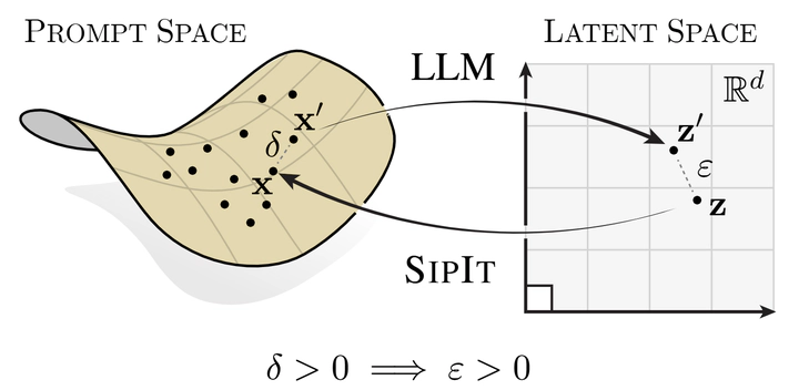 Transformer components such as non-linear activations and normalization are inherently non-injective, suggesting that different inputs could map to the same output and prevent exact recovery of the input from a model’s representations. In this paper, we challenge this view. First, we prove mathematically that transformer language models mapping discrete input sequences to their corresponding sequence of continuous representations are injective and therefore lossless, a property established at initialization and preserved during training. Second, we confirm this result empirically through billions of collision tests on six state-of-the-art language models, and observe no collisions. Third, we operationalize injectivity: we introduce SipIt, the first algorithm that provably and efficiently reconstructs the exact input text from hidden activations, establishing linear-time guarantees and demonstrating exact invertibility in practice. Overall, our work establishes injectivity as a fundamental and exploitable property of language models, with direct implications for transparency, interpretability, and safe deployment.